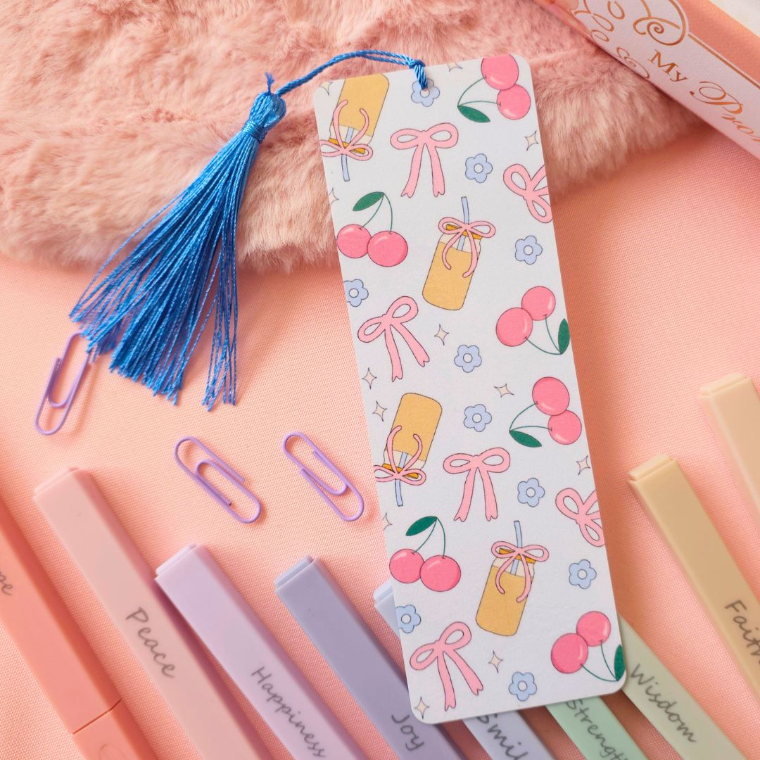 Handmade with love, these iced coffee bow bookmarks are printed on cardstock, featuring a double-sided design and laminated for durability.