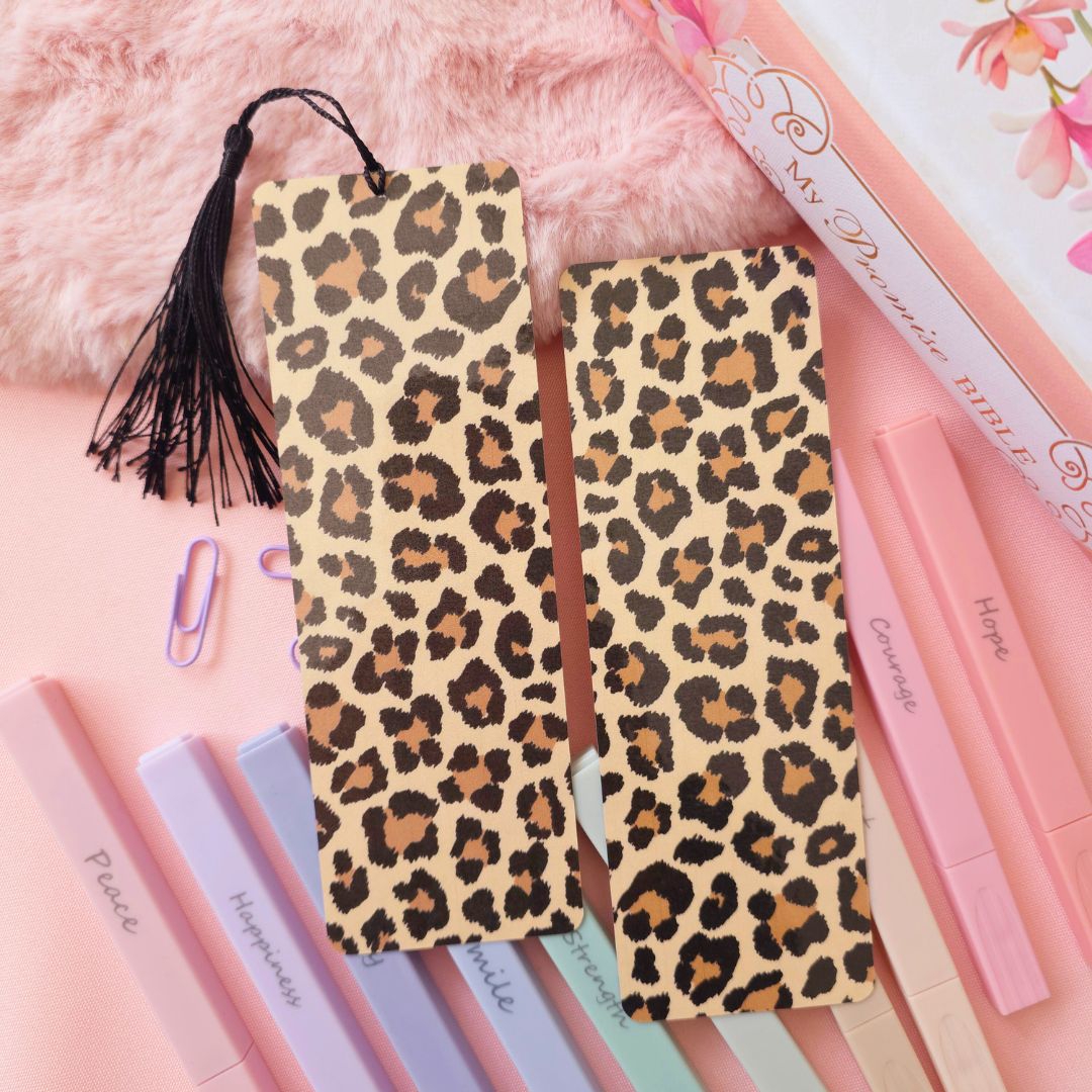 Adorably crafted with affection, these Leopard print bookmarks are made of sturdy cardstock, showcasing a dual-sided layout and coated for long-lasting quality.