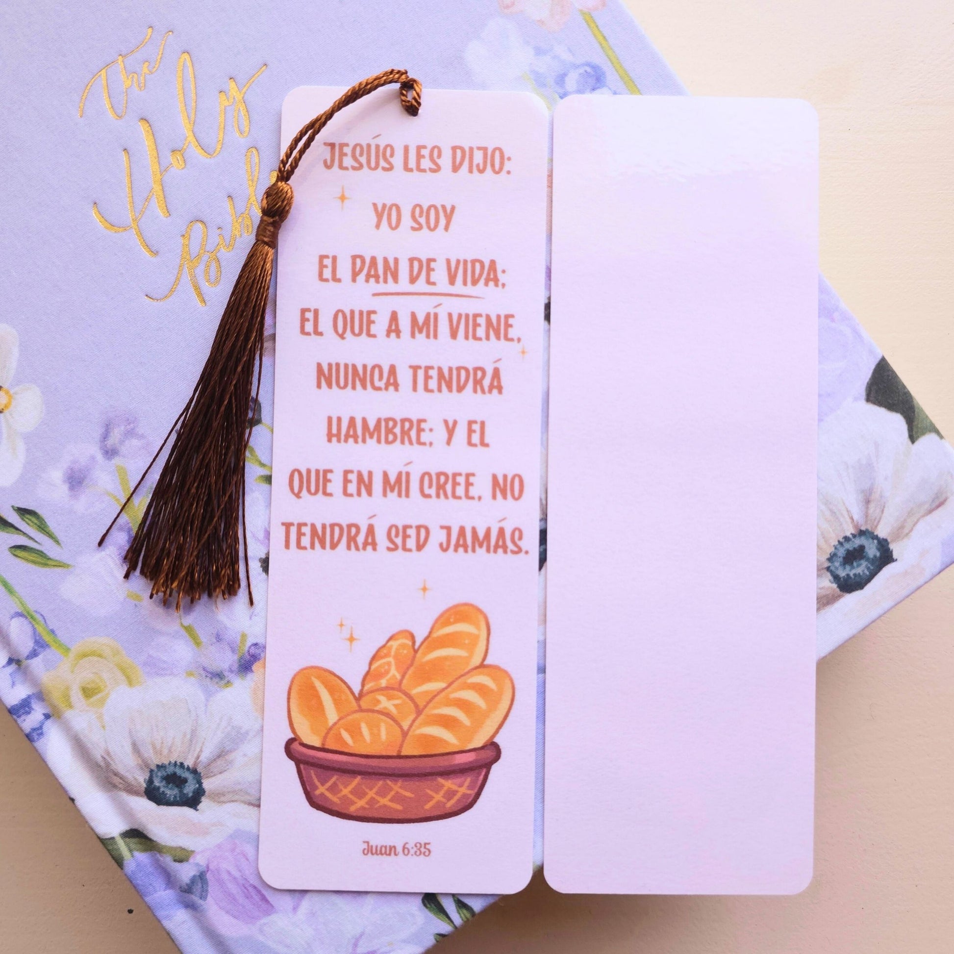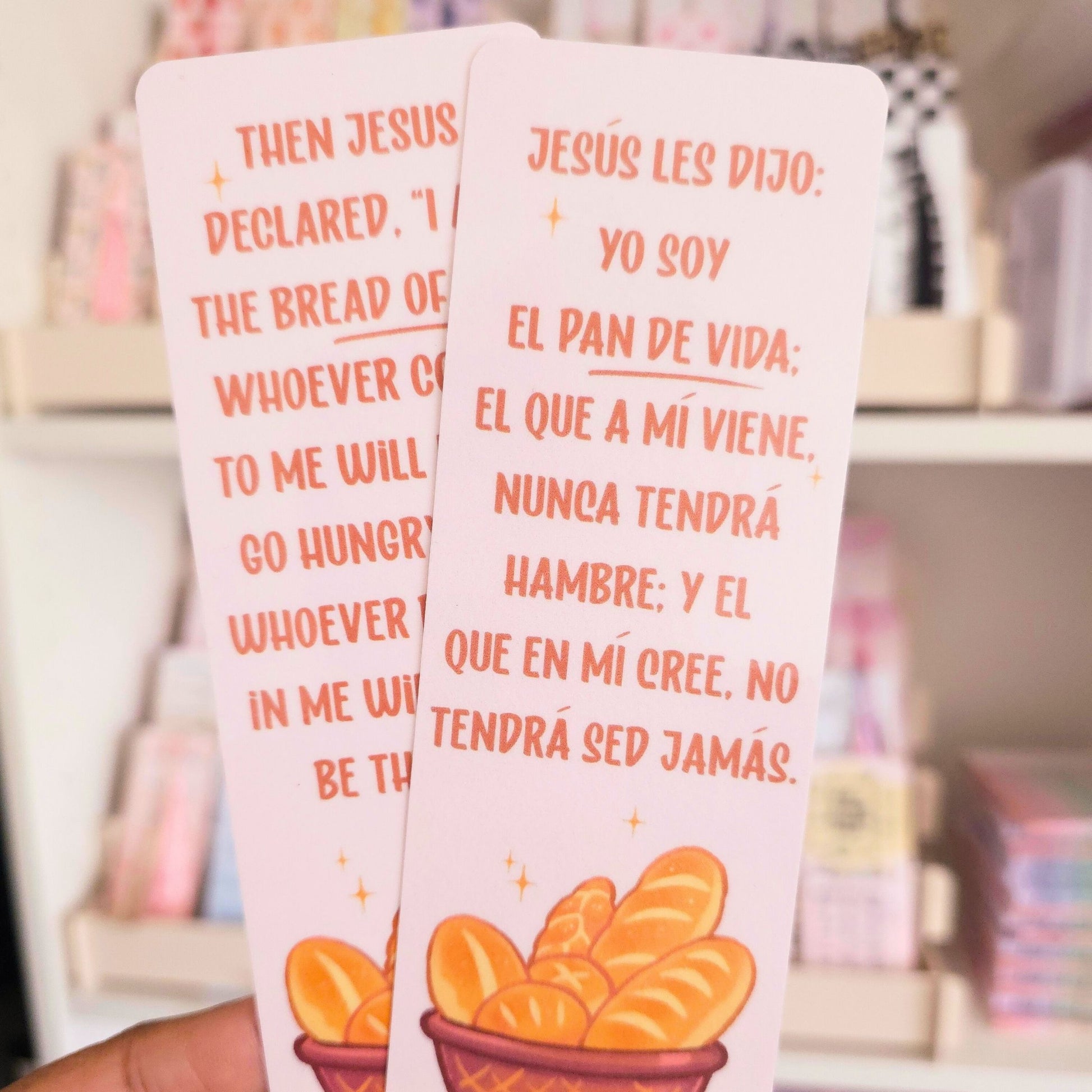 Handmade with love, these Juan 6:35 bookmarks are printed on cardstock, feature a double-sided design, and are laminated for durability.